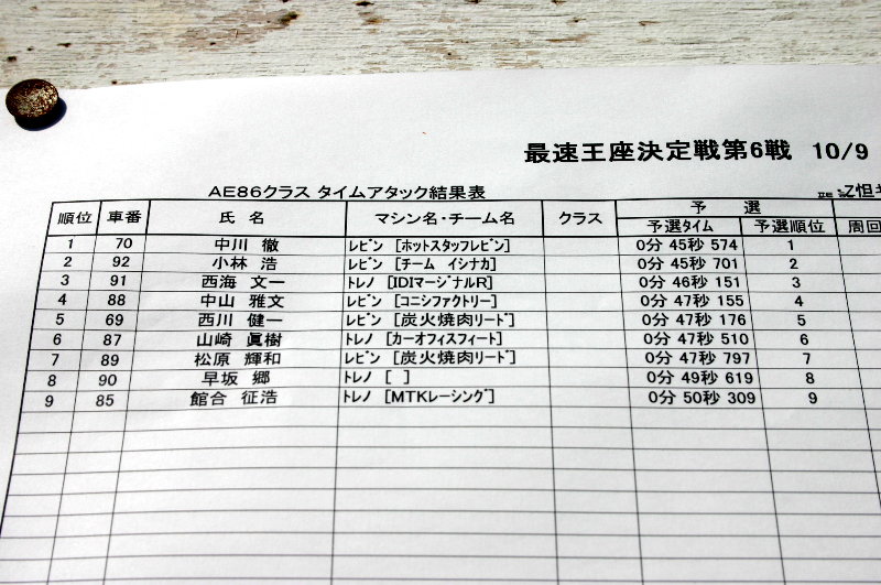 ■ くぅぅっっ!1位2位は当社エンジン搭載車です♪ちょっと嬉しい45秒台!でも西海選手はノーマルミッションでこのタイムですから