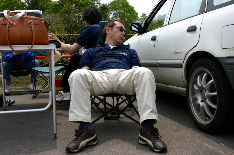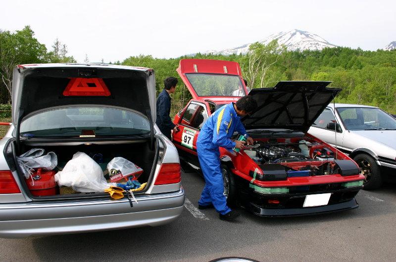 ■ 早坂選手親子です、お父さんはベンツで乗り付けてレース前のメンテナンスに余念がありません。