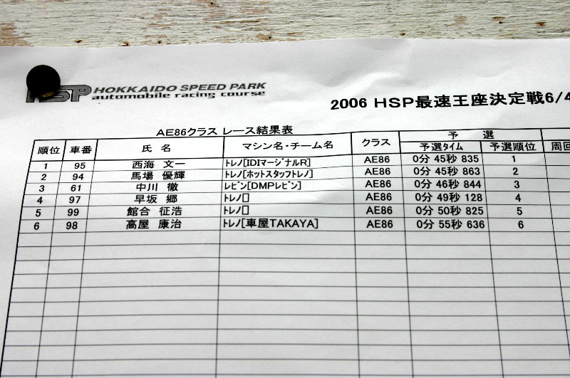 ◆ HSP最速王座決定戦2006 AE86ワンメイクレース第2戦 ◆
