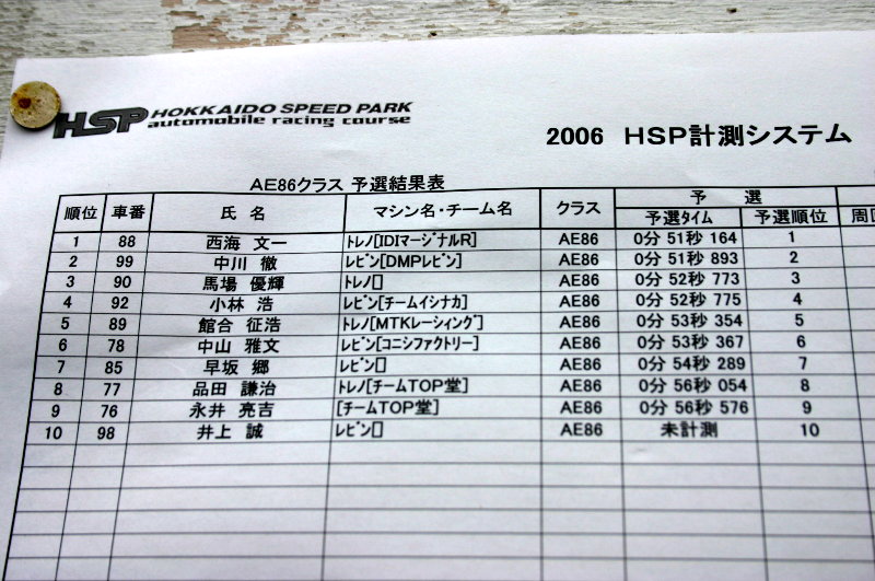◆ HSP最速王座決定戦2006 AE86ワンメイクレース第5戦 ◆