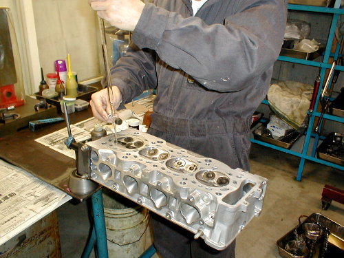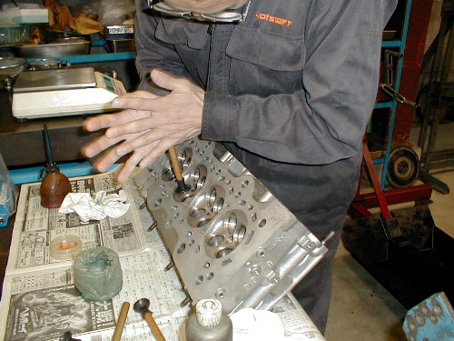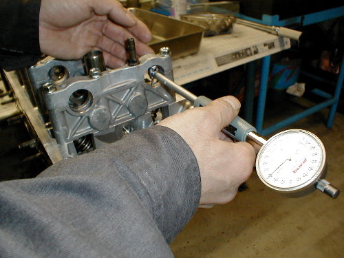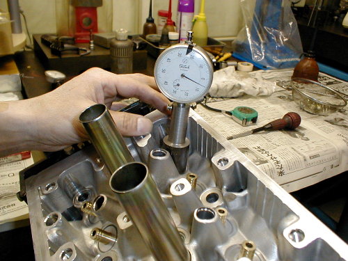 ■ バルブが全て組込まれたら、燃焼室容積のチェックをします。