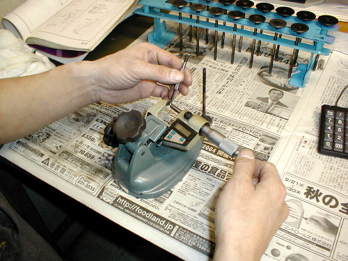 右側は上の画像で紹介したホールゲージの測定をしている所です、それぞれの「太さ・内径」を