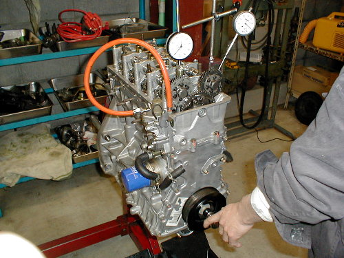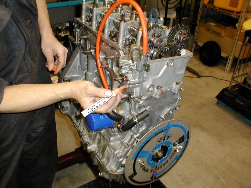 V-TECを作動した状態にしてバルブタイミングを測定する為に、V-TECの油圧ラインにエアーを